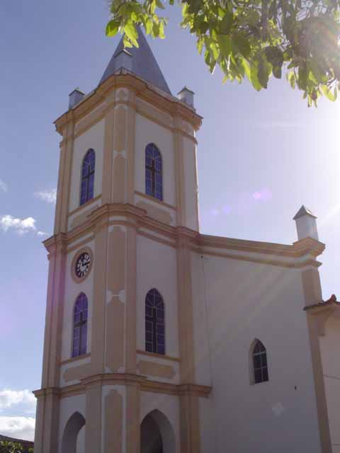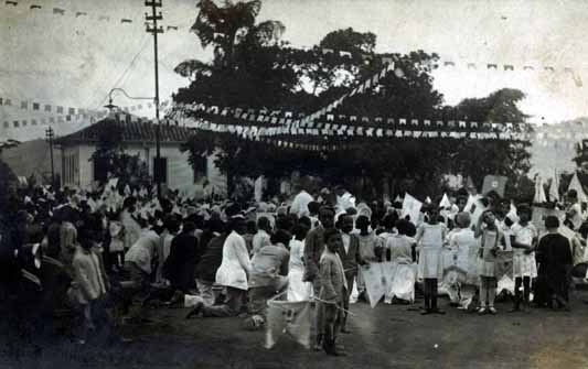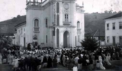 “Outro templo é a Egreja do Rosário, no largo homonymo. É esssa egreja um mimo de belleza e de arte, toda branca e sorridente de amor e de caridade. As decorações, em branco e ouro, são admiráveis, como assim a sua alta torre, o altar-mór de N. S. do Rosário, tendo á direita o S. Coração de Jesus e á esquerda S. Cecília. Bellas também as estatuas de S. José e de S. Benedicto. É vigário da Parochia Monsenhor Júlio Fiorentini, tendo como coadjutor o Rvmo. Padre João Manoel Trocado”