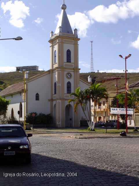 Como se viu na informação de Roberto Capri, a Igreja do Rosário era toda branca no início do século XX. Na década de 1960 os contornos eram pintados em tom creme. Na década de 1980, substituíram o creme por azul claro e depois voltaram à cor anterior. Inexplicavelmente, nos anos 2000 pintaram todos os templos católicos de Leopoldina num tom forte de azul, desrespeitando as características do patrimônimo.