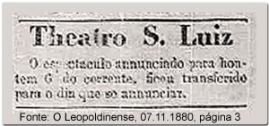 Parece que o Teatro Brandão não teria sido o único em funcionamento naquele ano de 1880. Na mesma página d’O Leopoldinense encontramos o seguinte anúncio: