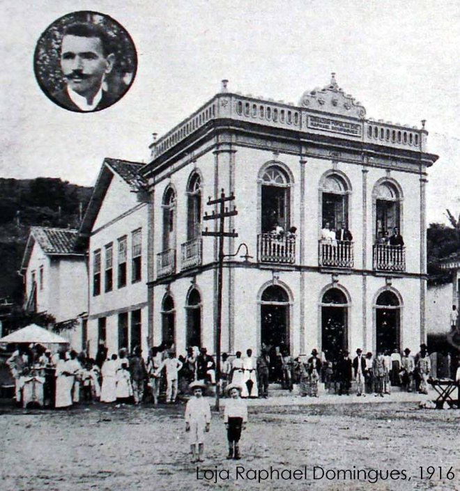 RAPHAEL DOMINGUES Armazem de mantimentos, seccos e molhados, sal, cal e kerozene Vendas por Atacado e a Varejo Completo sortimento de fazendas, armarinho, modas, calçados, chapéos de sol e de cabeça, louça, ferragens, etc., etc. Largo da Estação Telephone-12 LEOPOLDINA – E. de Minas
