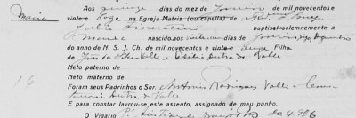 Maria Vale: centenário de nascimento Nasceu em Leopoldina no dia 21 de dezembro de 1911, filha de João Rodrigues Vale e Odilia Dutra. Sua mãe era bisneta do povoador João Teixeira Marinho Partilhar isto: Click to share on X (Abre numa nova janela) X Clique para partilhar no Facebook (Abre numa nova janela) Facebook Clique para partilhar no WhatsApp (Abre numa nova janela) WhatsApp Clique para partilhar no Telegram (Abre numa nova janela) Telegram Carregue aqui para enviar por email a um amigo (Abre numa nova janela) E-mail Gosto Carregando...
