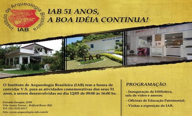 Previous ImageNext Image 51º aniversário do IAB Convite para as comemorações de aniversário do Instituto de Arqueologia Brasileira