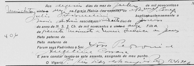 19 de fevereiro de 1911 – Nasce em Leopoldina, filho do italiano Antonio Sante Carraro e Erondina Angelica da Conceição. Neto paterno de Angelo Carraro e Giovanna Cancelliero.