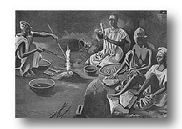 Dá-se o nome de tropeiros aos homens que conduzem as caravanas de burros destinadas a empreender essas viagens e outras semelhantes. As tropas um pouco consideráveis são divididas em lotes de sete animais, e cada um é confiado à guarda de um negro ou mulato que, caminhando na retaguarda dos cargueiros de que está encarregado, os incita e dirige por meio de gritos ou por um assobio bastante brando. Costuma-se carregar cada besta com oito arrobas (cerca de 120 quilos), e para não ferí-los, iguala-se a carga com o maior cuidado. Cada caravana que chega a um rancho aí toma o seu lugar; os animais são logo descarregados; arruma-se as mercadorias com ordem; cada animal recebe sua ração de milho; levam-nos ao pasto; arranjam-se-lhes as albardas, e se desentortam os cravos destinados a ferrá-los. Enquanto isso o mais jovem da tropa vai buscar água e lenha, acende o fogo, arma em redor três bastões que se unem superiormente, amarra-os, e suspende um caldeirão na tripeça, onde põe a cozinhar o feijão preto destinado ao jantar do dia e ao almoço do seguinte. Os tropeiros das diversas caravanas se aproximam uns dos outros, põem-se a conversar, relatam suas viagens e aventuras amorosas, e, às vezes, um deles encanta o trabalho dos vizinhos tocando guitarra e cantando algumas dessas árias brasileiras que tem tanta graça e doçura. Tudo se passa com ordem; raramente discutem, e falam entre si com uma delicadeza desconhecida na Europa entre homens de classe inferior. No dia seguinte, levantam-se bem cedo; dão aos burros nova ração de milho. Deixando o rancho, saúdam os tropeiros que ainda aí ficam; fazem nova caminhada de três a quatro léguas, e chegam a outra estação pelas duas ou três horas da tarde.[1]
