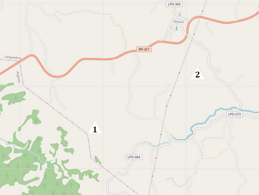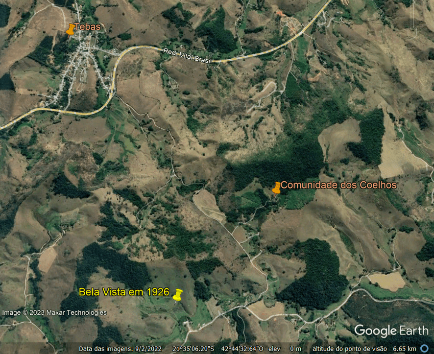 Quando transportamos a localização das duas propriedades em 1926 para cartografia atual[3], descobrimos que uma delas ficava na atual divisa entre Leopoldina e Argirita, ou seja, em território do distrito de Tebas.