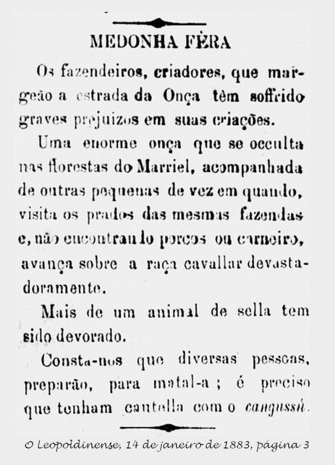 Previous ImageNext Image Animal feroz ronda propriedades em Leopoldina Anúncio sobre uma onça na “floresta do Marriel”.