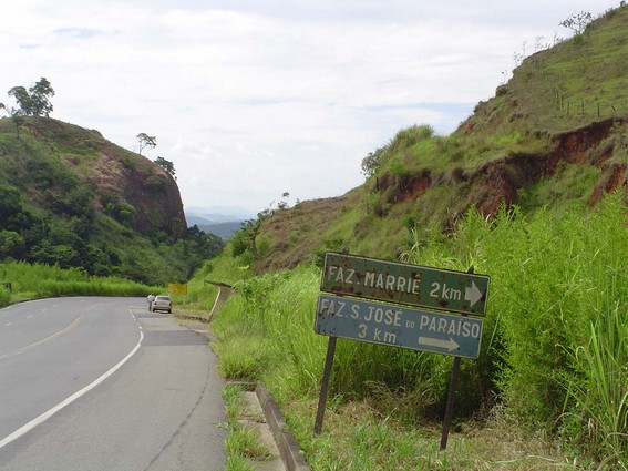 Previous ImageNext Image Entrada para a Fazenda Marrié, Leopoldina Placa na BR 116 indicando o acesso à Fazenda Marrié
