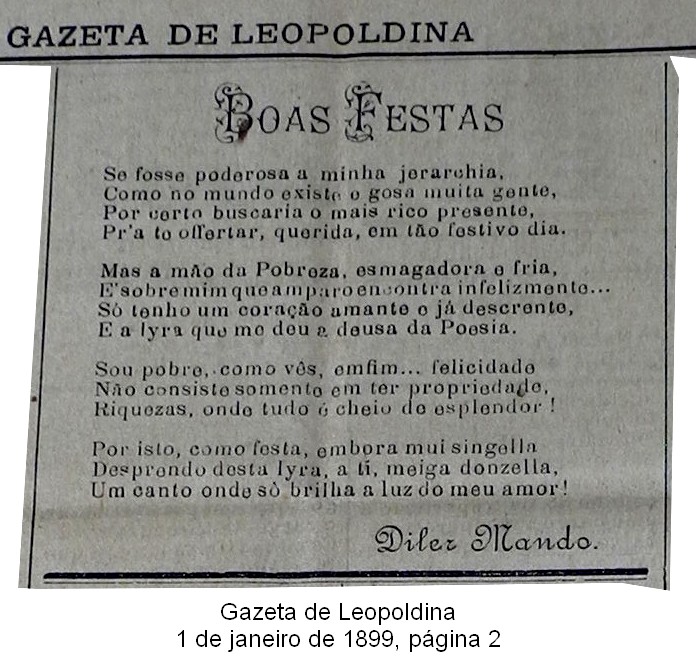Há 115 anos a Gazeta de Leopoldina publicava o soneto abaixo, do poeta Dilermando Martins da Costa Cruz, nascido na cidade aos 15 de setembro de 1879