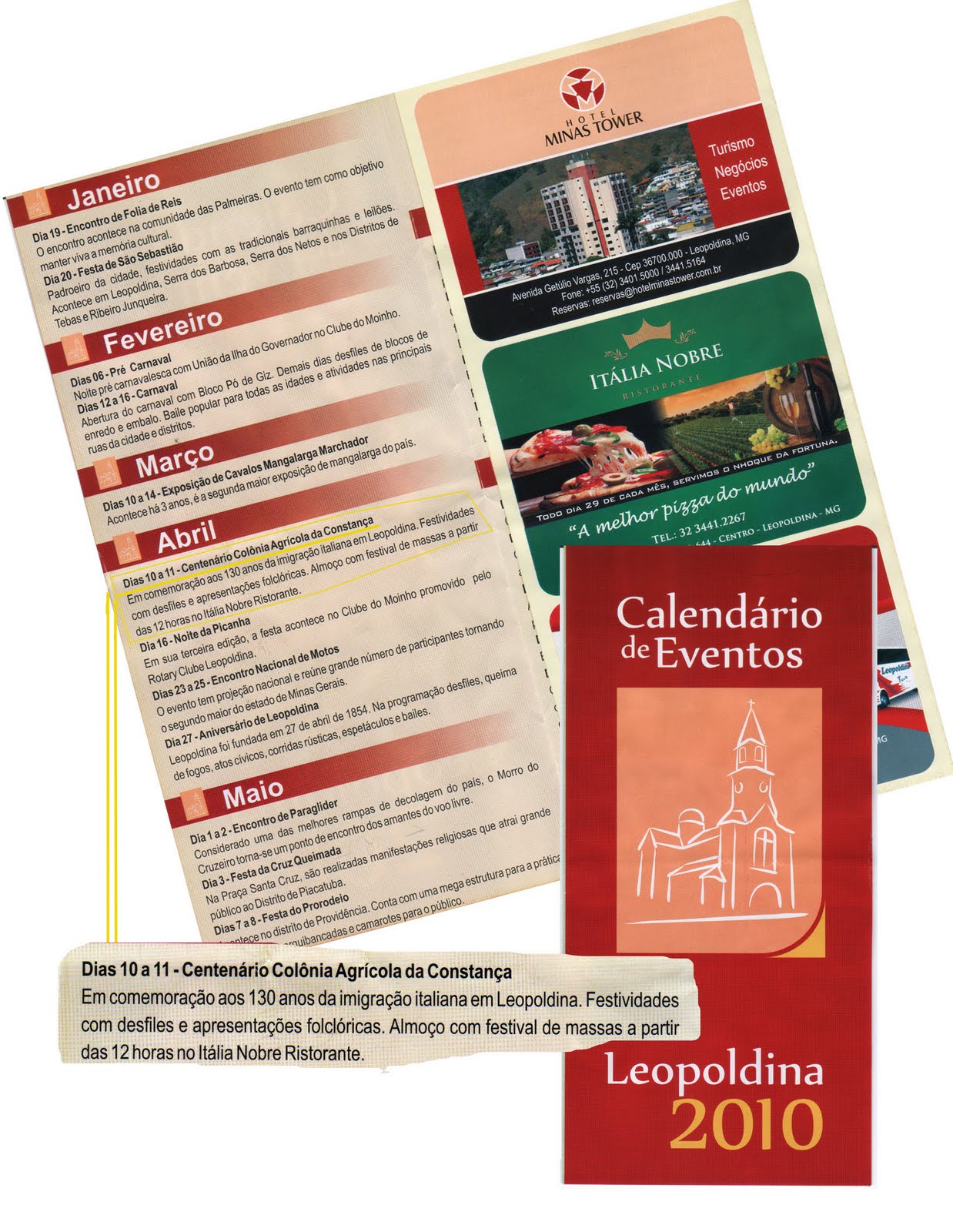 Você está convidado a comemorar conosco o Centenário da Colônia Agrícola da Constança e os 130 Anos da Imigração Italiana em Leopoldina.