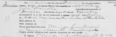 pais: Antonio Mauricio da Silva e Emilia dos Reis Coutinho