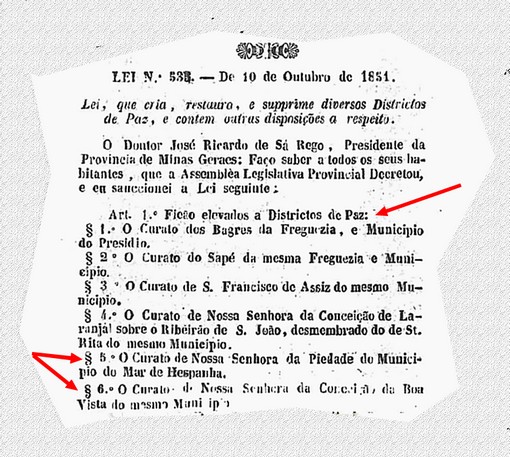 Alguns autores consideram que não houve Instituição Canônica, ou que a lei acima foi tornada sem efeito, em virtude do contido na lei número 3798 de 16 de agosto de 1889, que tratava da elevação à Freguesia. Pedimos permissão para manifestar uma opinião algo divergente. Analisando Atas de Visitas Comarcais do período, concluímos que pode ter havido algum processo interrompido, mas que a legislação civil acatou a lei de 1873, passando a referir-se à Freguesia de Nossa Senhora da Piedade da Leopoldina. Nos atos eclesiásticos, porém, consta que ainda era Curato quando foi transferido para a Diocese de Mariana, por Ato Pontifício de 16 de julho de 1897, com o nome de Piedade da Leopoldina.