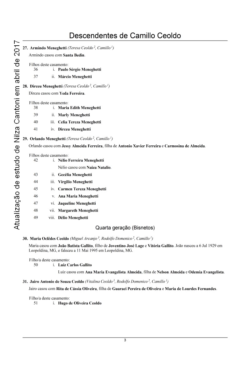 27. Pedro Carminati nasceu a 28 Abr 1826 em Argirita, MG. Pai de: