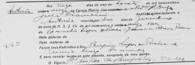 Antonio, filho de Antonio José de Andrade e Cecilia Vieira Ramos