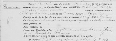 - Julio, filho de Custódio de Almeida Lustosa e de Maria das Dores de Freitas