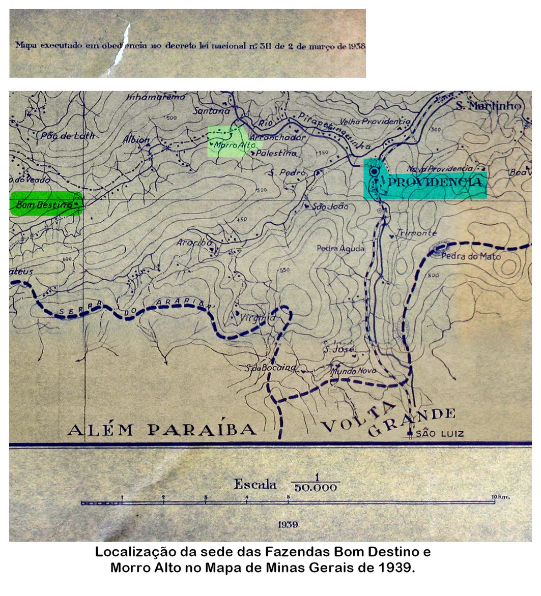 As duas propriedades ficavam em território até então subordinado à paróquia de Madre de Deus do Angu, distrito de Angustura, que em 1884 foi transferido de Leopoldina para Além Paraíba. O distrito de Providência, em cujo território se inserem atualmente as duas fazendas, só foi criado em 1890. Na imagem abaixo estão destacados os nomes das duas propriedades e da Estação Providência, conforme cartografia de 1939.