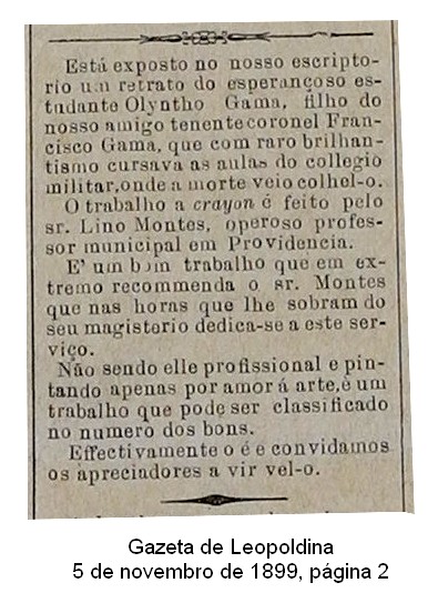 1 – Correio Paulistano (São Paulo, SP) 07.11.1913, ed. 18068 p. 3 coluna 2, Notícia do Correio de Minas sob o título ‘Leopoldina Arte’